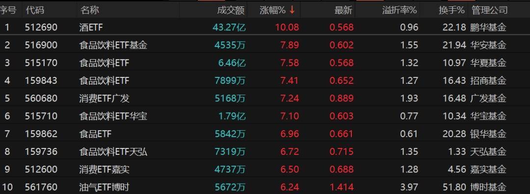 1月29日,除了白酒股大涨以外,大消费板块整体表现较为抢眼。华安食品饮料ETF、华夏食品饮料ETF、广发消费ETF、华宝食品饮料ETF等涨幅均超过7%。