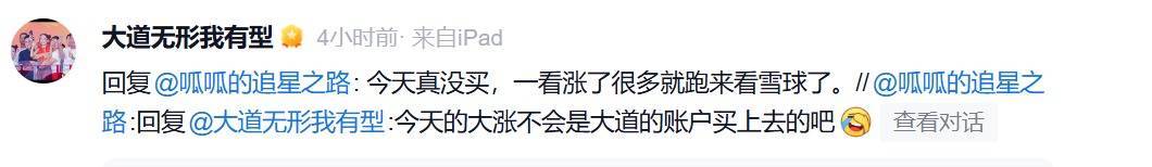 针对网友提问,段永平回应称:“今天真没买,一看涨了很多就跑来看雪球了。”