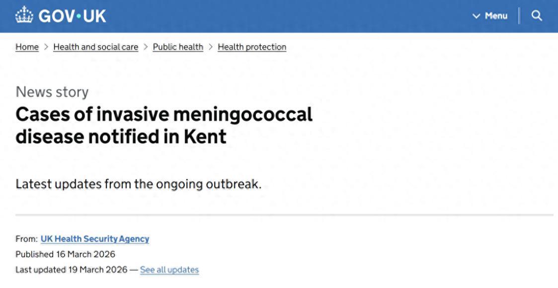 3月16日,英国卫生安全局就本次侵袭性脑膜炎球菌病疫情发布公报,每日动态更新病例数据。