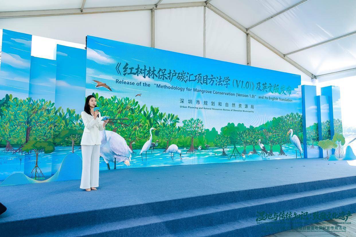 活动现场,深圳正式发布《红树林保护碳汇项目方法学(V1.0)》及英文版,有效填补了国内自然生态系统保护类碳汇项目方法学的空白,为全国乃至全球红树林保护碳汇开发贡献科学、规范的“深圳方案”,让“绿水青山”向“金山银山”的转化有了专业支撑。