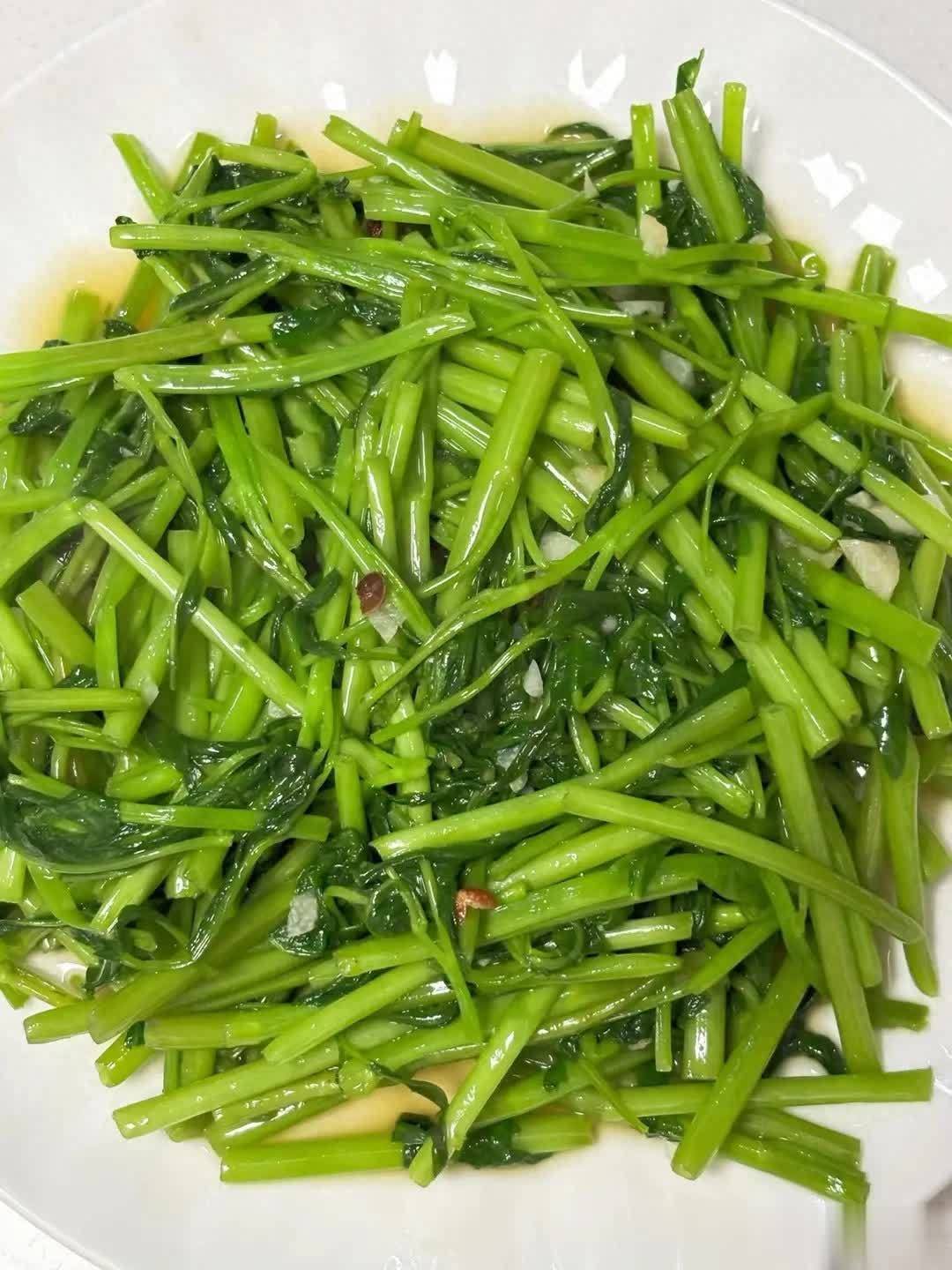 1. 空心菜洗净切段,茎叶分开;锅中烧水,加少许盐和油,先焯茎部20秒,再放叶片焯10秒捞出(保持翠绿)。