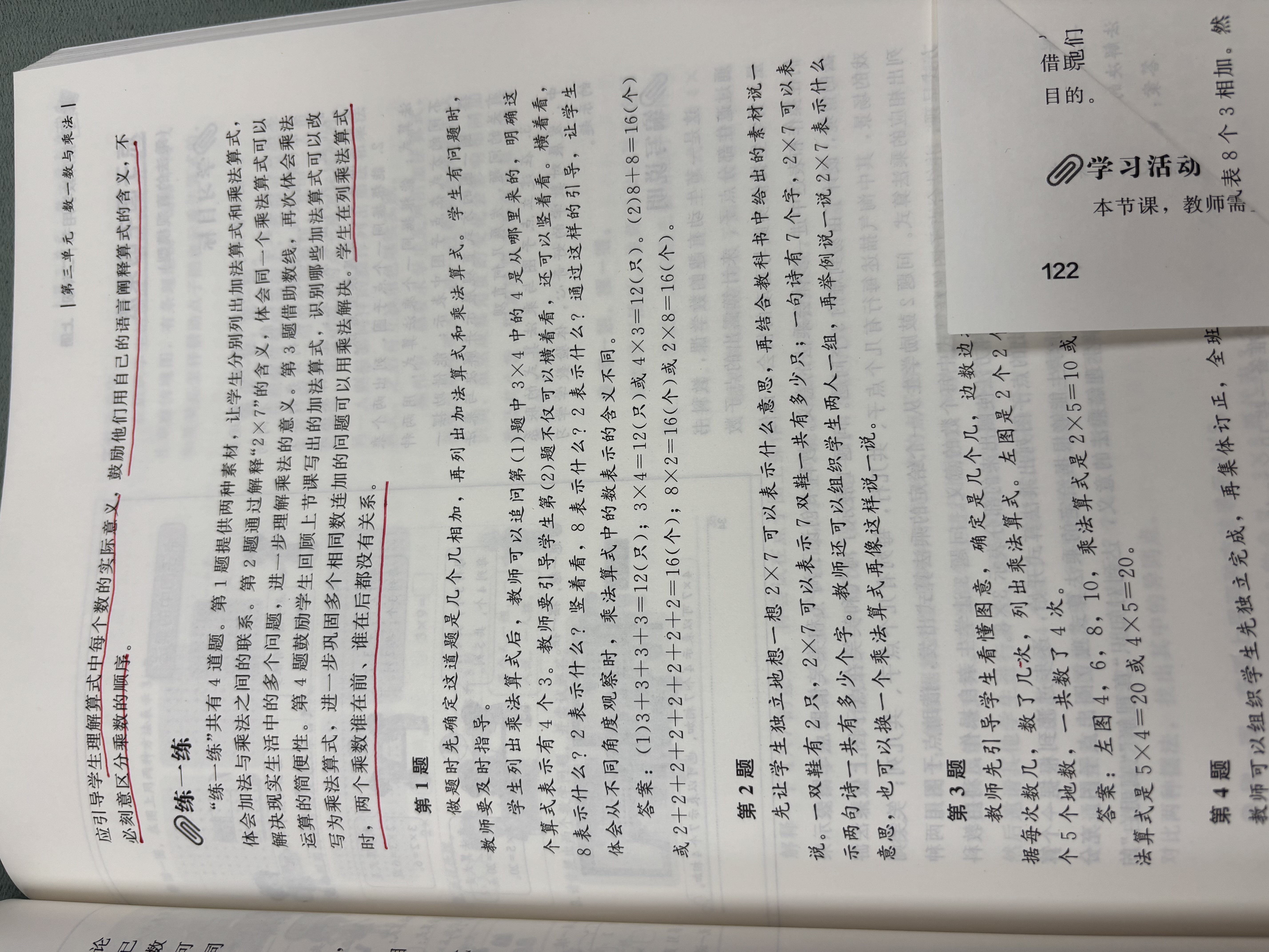 马骄表示,所用教师用书提醒“乘数谁在前谁在后没关系”